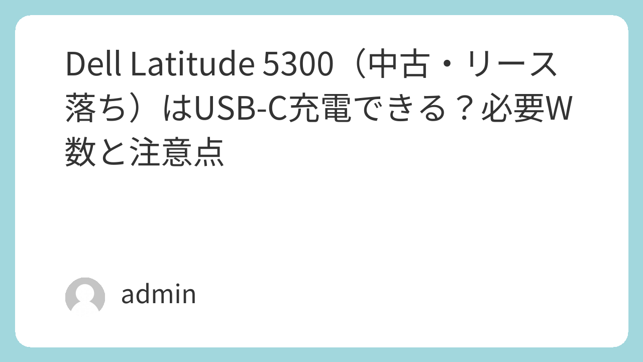 Dell Latitude 5300(中古・民間払い下げ)を購入して、「USB-Cで充電できると思ったのに警告が出る」「手持ちの充電器では反応しない」と困っていませんか。Latitude 5300は、民間企業での大量導入後、リース契約満了により払い下げ品が多く流通している定番モデルです。一方で、USB-C充電時のW数条件がやや厳しいため、充電トラブルが起きやすい傾向があります。